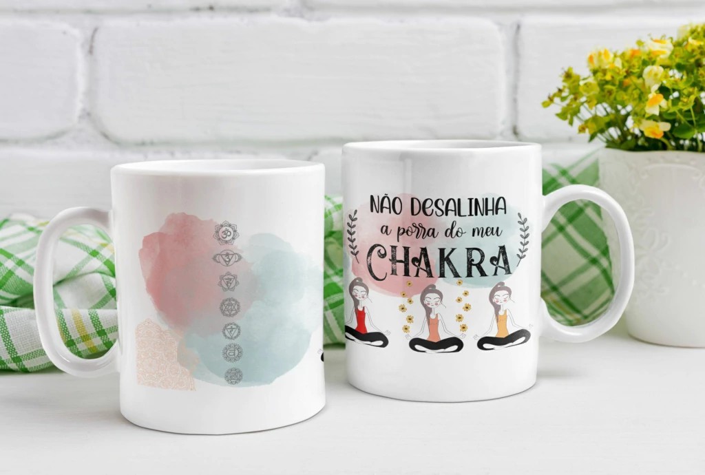 Caneca, Xícara de Porcelana Chakra Desalinhado