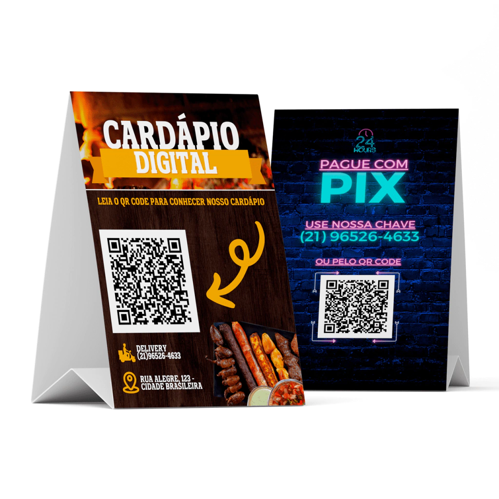 R: O QRCODE na placa permite que seus clientes façam pagamentos de forma rápida e conveniente usando seus smartphones ou acessar seu site rede social ou até mesmo seu cardápio digital.